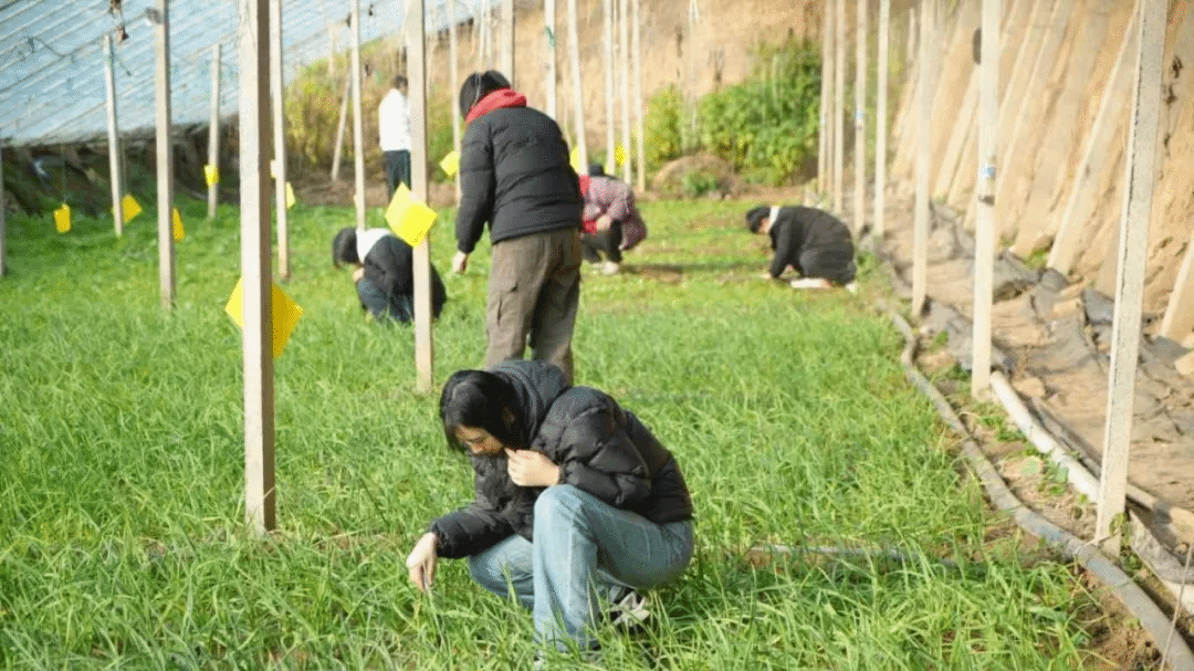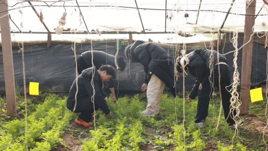 随后,学生进行收割、拔草、配菜、装运,投入全方面劳作内容。在技术员指导下,同学们学会了辨识越冬杂草的种类与特性,体验“冬耕”的力度与技巧。大家戴上手套,分组分区域,对田垄间、沟渠边的杂草进行仔细清理。不同于夏季作物的生机勃勃,冬季除草更需耐心与细致,考验着同学们的观察力与耐力。