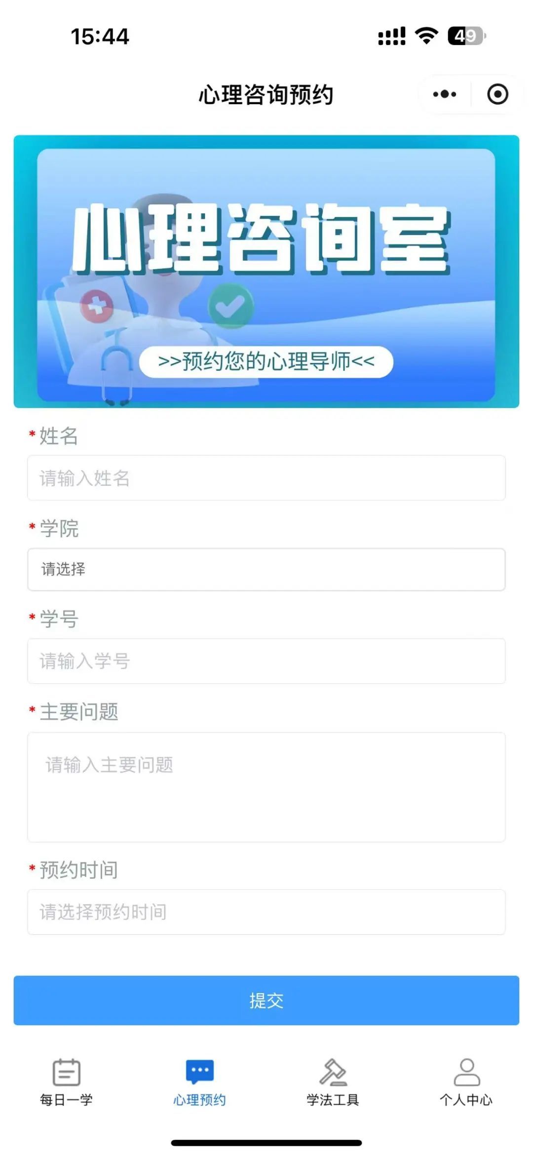 同学们至少提前1天,最多提前5天预约咨询;如遇到特殊情况,工作时间可前往两校区心理中心办公地点线下咨询。