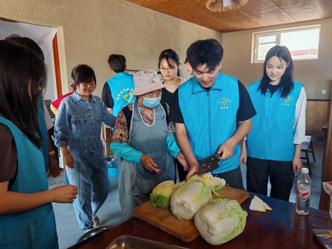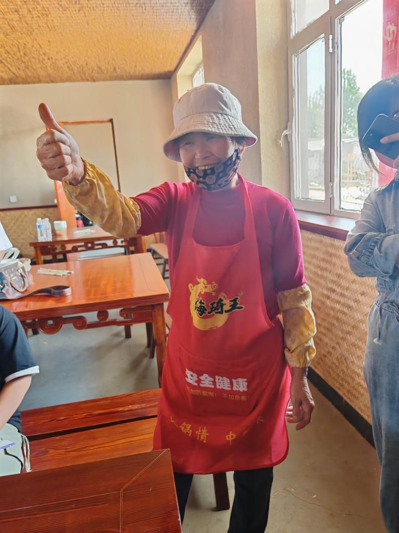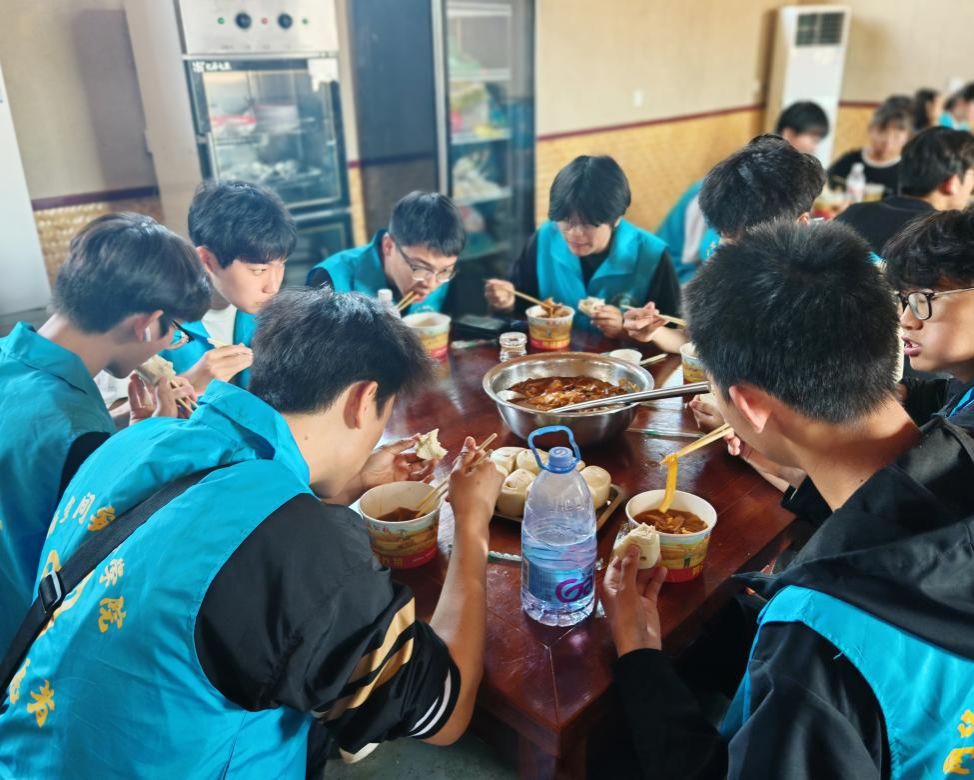 午饭时间,师生齐动手做大锅菜,分工有序,熟练的剥葱、切菜、烧火,在分工合作中体验劳动的乐趣,连社员阿姨都对我们竖起了大拇指。品尝自己亲手制作的大锅菜,俱是劳动带来的满足与幸福。