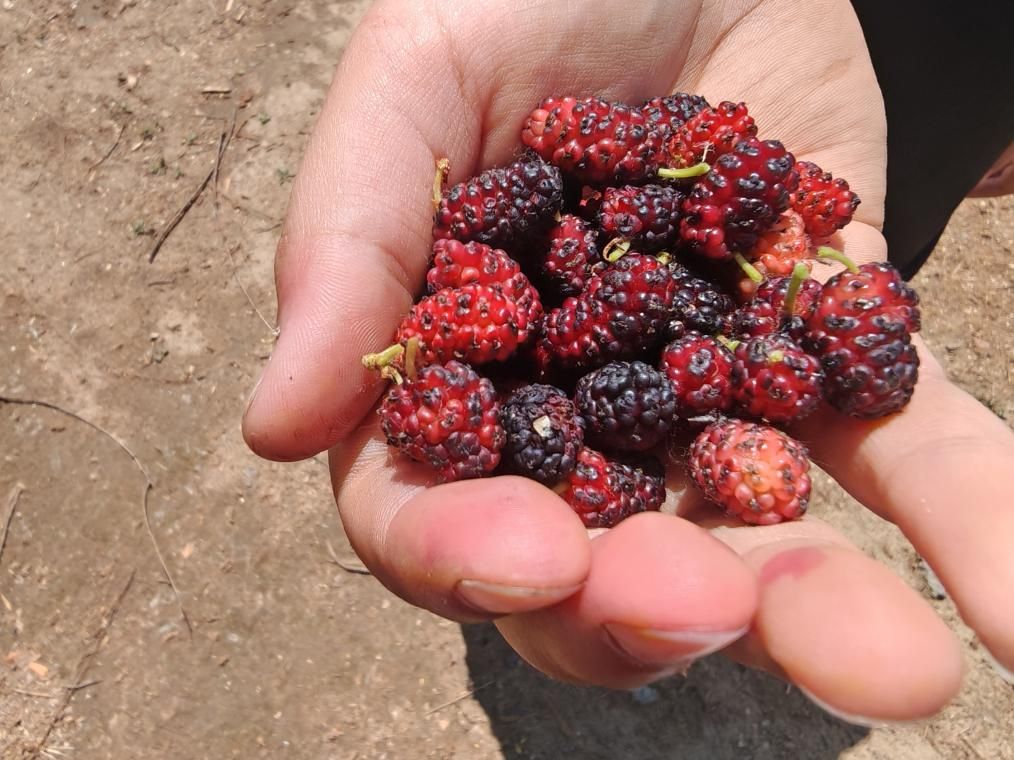 在广阔的田野上,看着风吹麦浪,想象着今年的丰收;桑树下,采桑品尝,辨一辨哪个是生哪个是熟;果园里,论一论哪个是桃子哪个是梨子;葡萄架下,数一数一株葡萄到底能有多高产,热热闹闹体验着美好的户外时光,充实着基础的农业知识。