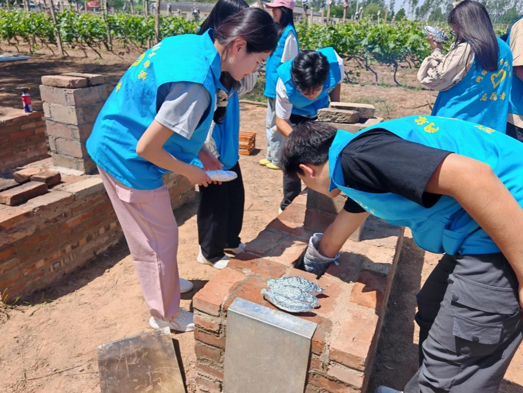在农事体验区,大家切实体会了“锄禾日当午,汗滴禾下土”的农耕场景。在老队长的耐心讲解下,挽袖插秧,一个个化身“红薯栽种能手”,用指尖触碰生命的活力与成长的希望,理解中华民族在创造历史中凝聚形成的劳动精神。于汗水挥洒间,领悟“劳动创造价值,实践磨砺青春”的真谛。