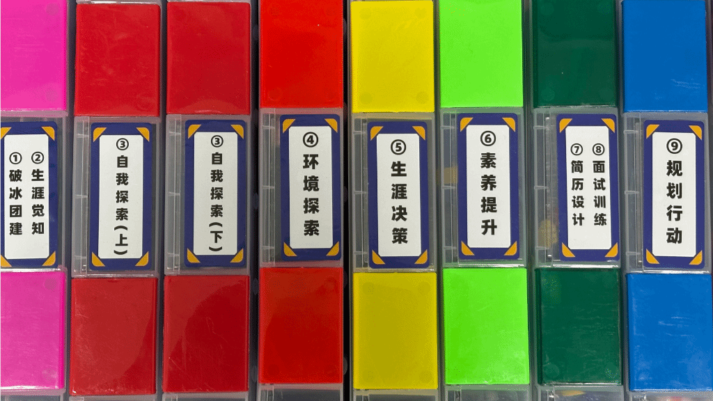 此次培训引入职业生涯规划教具,重在解决教学理念思维陈旧的问题、学生参与度不强、互动少等问题,让参训教师学习新的生涯教育理论与内容——如何从本土化视角出发,进行生涯意义与主题的探索建构,开发学生的生涯适应与发展能力等。培训三天,徐教授针对职涯规划与就业指导课程体系中的七大模块,设计了11个主题场景游戏,如“搭建生涯彩虹”、“绘制雷达图”、“职业探索九宫格”等,充分利用教具引导参训学员们在游戏体验中一一解锁“生涯密码、自我密码、环境密码、决策密码、行动密码、简历密码、面试密码”,帮助参训教师深度掌握游戏化教学设计的主旨与思路。