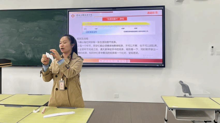 在《大学生职业生涯发展与规划》课程组磨课过程中,胡晓微老师结合时政热点与游戏化教学道具,生动呈现第9周的教学内容设计;韩京兴老师立足就业形势与政策,解析第10周课程授课思路。随后,全体教师针对“撕纸游戏”、“破冰互动”、“目标探索”等课堂活动设计、情境创设及反馈引导展开热烈讨论,探索寓教于乐的教学模式。