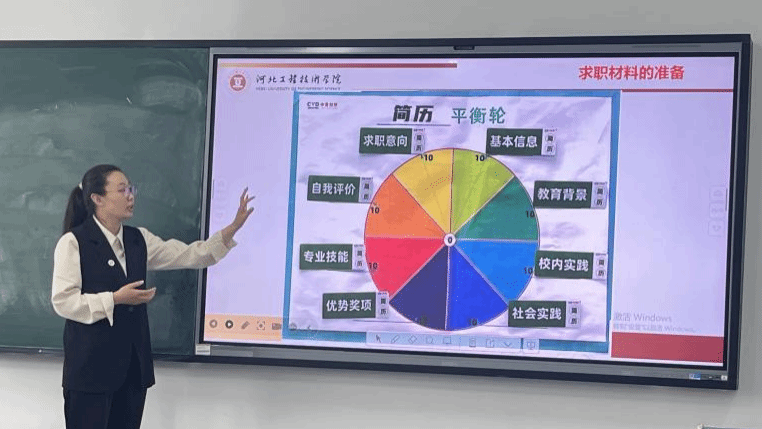 在《大学生就业指导》课程组磨课过程中,安靖华老师根据授课内容,结合“简历平衡轮”活动展示第10周课程框架。教师们围绕游戏化工具的应用、学生实践反馈等展开精细化打磨,强调就业指导的实用性与互动性。