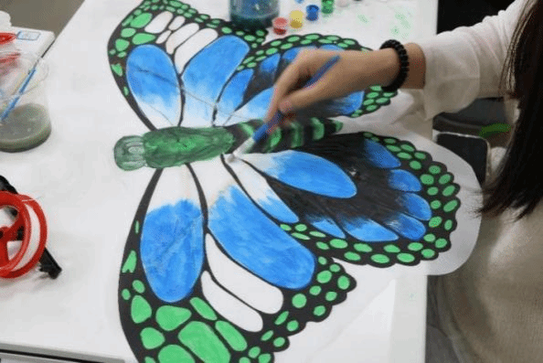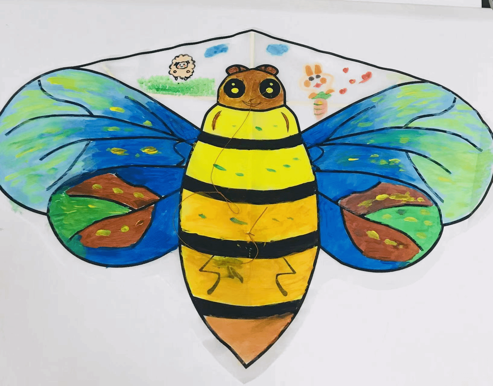 多彩的颜料在风筝上铺开,在制作过程中,同学们脑洞大开,灵感满满,依照着自己的想象尽情填色,在风筝上泼洒着自己的创意,让风筝成为独一无二的艺术品。经过近两个小时的努力,一只只色彩斑斓、形态各异的风筝在同学们的手中诞生,学生们欢呼雀跃,看着自己的作品脸上洋溢着自信和骄傲的笑容。